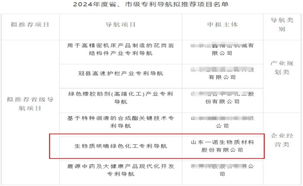 山東一諾生物入選2024年度省級專利導航項目擬推薦名單